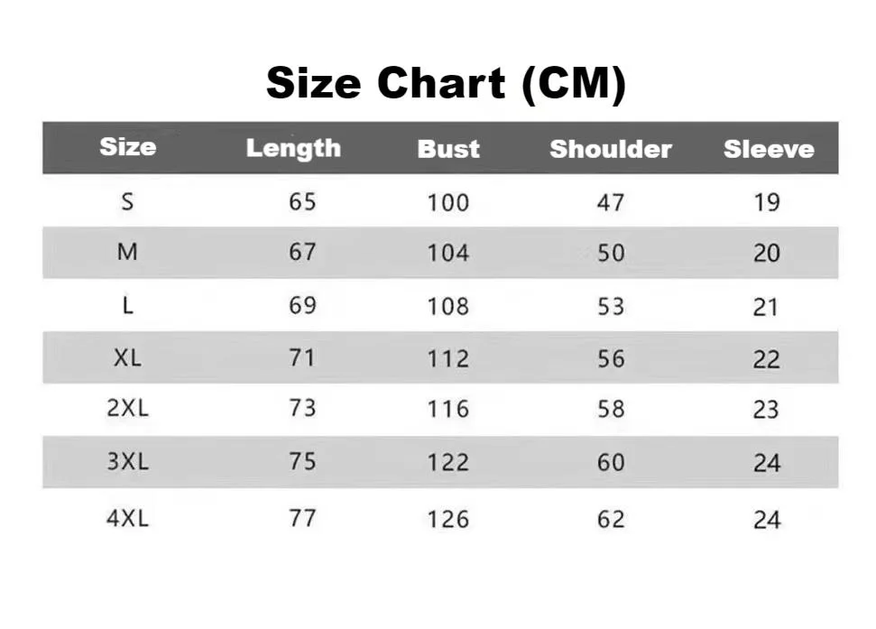 | Size | Length | Bust | Shoulder | Sleeve |